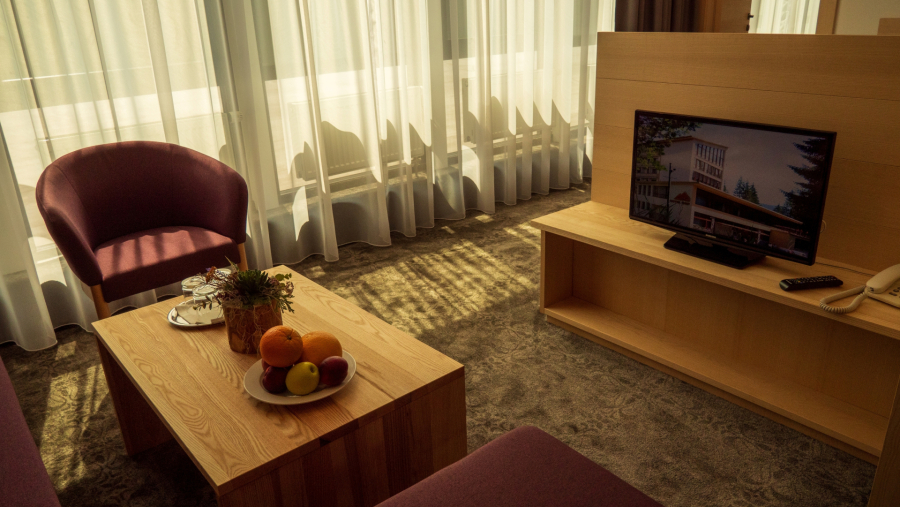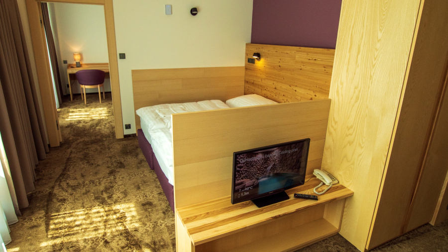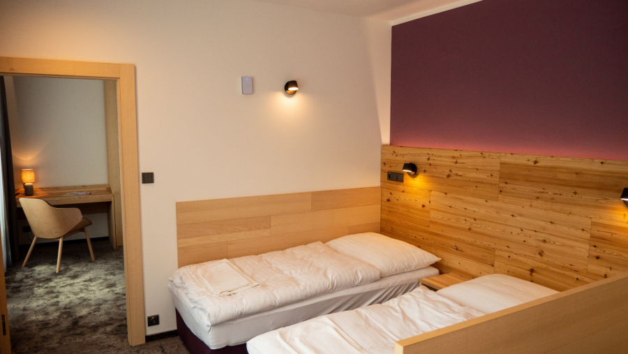 Komfortne zariadený apartmán sa skladá z dvoch priestranných samostatných izieb s výhľadom na Chopok. Prvá izba disponuje jednou manželskou posteľou, v druhej izbe sa nachádza manželská posteľ alebo 2 oddelené lôžka pre 2 osoby a gauč ako prístelka pre ďalšiu 1 osobu. V apartmáne nie je balkón. Detská postieľka na vyžiadanie.